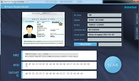 스캔과 동시에 여권의 MRZ를 실제 텍스트 문자로 변환합니다. OCR은 패턴 인식이라는 인공 지능 형식을 사용하여 텍스트 문자를 식별한 후 유효성 검사를 진행합니다.